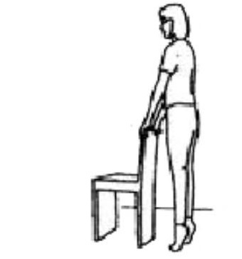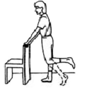Stand straight holding on to a chair. Bring your leg backwards keeping your knee straight. Do not lean forwards. Repeat ___ times.