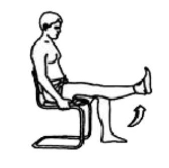 Sit on a chair. Pull your toes towards you, tighten your thigh muscle and straighten your knee. Hold 5 seconds. Repeat ___ times.