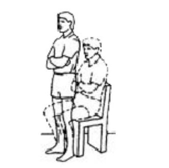 Sitting with your arms crossed. Stand up and then sit down slowly on a chair. (This can be made easier or more difficult by changing the height of the chair). Repeat ___ times.